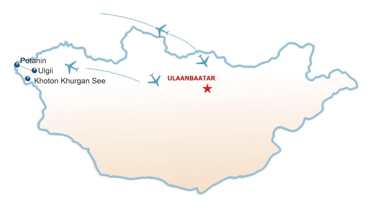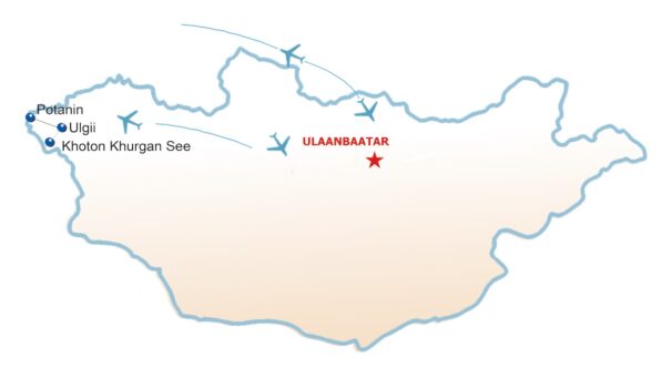 Morgens Flug nach Ölgii in der West-Mongolei. Wir fahren nach Westen zum Nationalpark Altai Tavan Bogd, unterwegs besuchen wir das Dorf Tsengel, Übernachtung im Zelt.