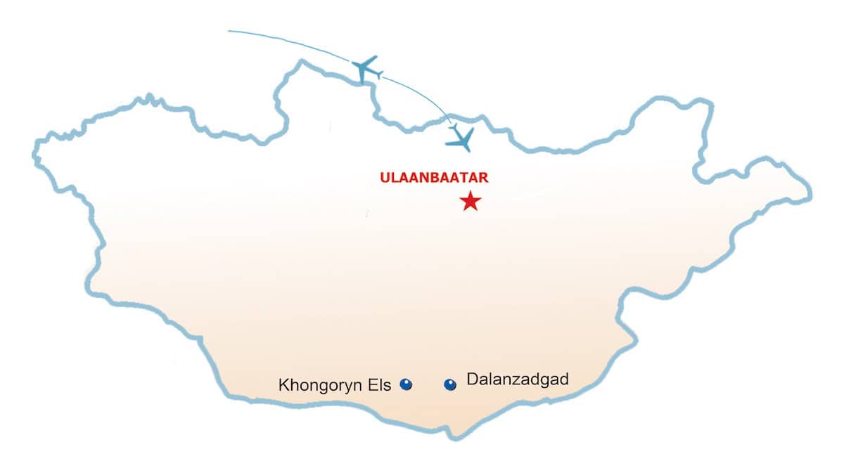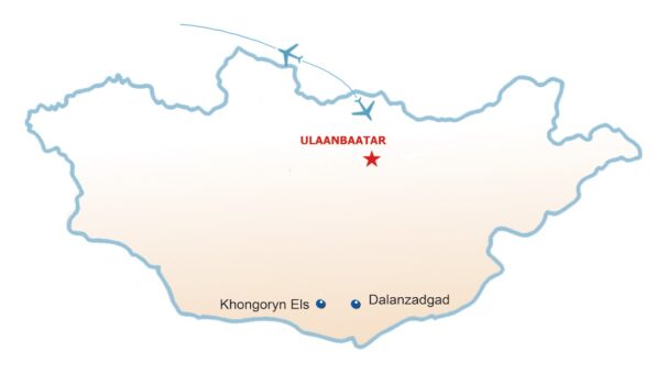 Ankunft bei den Khongoryn Els, den sogenannten „Singenden Dünen“. Nach dem Treffen mit den lokalen Kamelführern und einer Nomadenfamilie unternehmen wir am Nachmittag eine erste kurze Wanderung bis zum Fuß der Dünen. Am Abend genießen wir den Sonnenuntergang mit einem einzigartigen Panoramablick und übernachten im Jurtencamp.