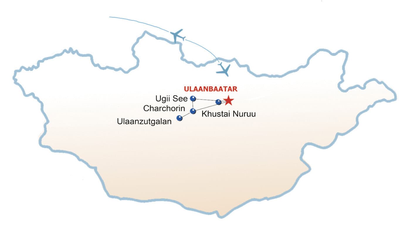 Heute fahren wir Richtung Westen in den Naturpark Khustai Nuruu, wo ein Projekt zur Wiedereingliederung der Przewalski-Pferde (auch Takhi genannt), einer Art „Urahn” unserer heutigen Pferde, erfolgreich durchgeführt wird. Nachmittags kurze Fahrt im Park zu den Wasserstellen der Takhis. Unterwegs können wir einen kurzen Ausflug zum Zaisan-Hügel unternehmen. Von dieser Erhebung am Rande der Hauptstadt hat man einen wunderbaren Blick über die gesamte Stadt. Die Gedenkstätte ist für die Mongolen ein sehr beliebtes Ausflugsziel.